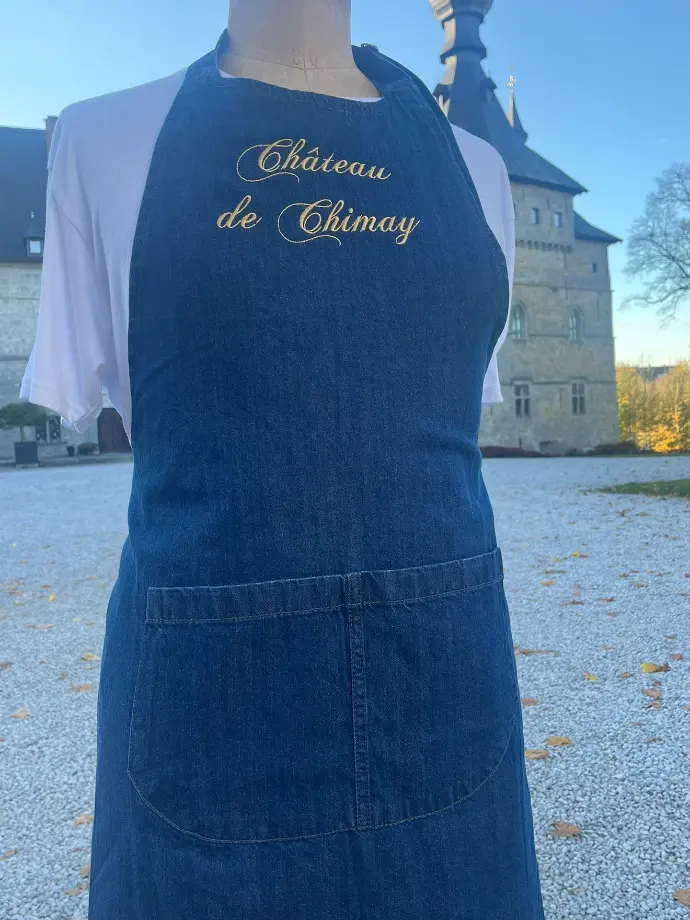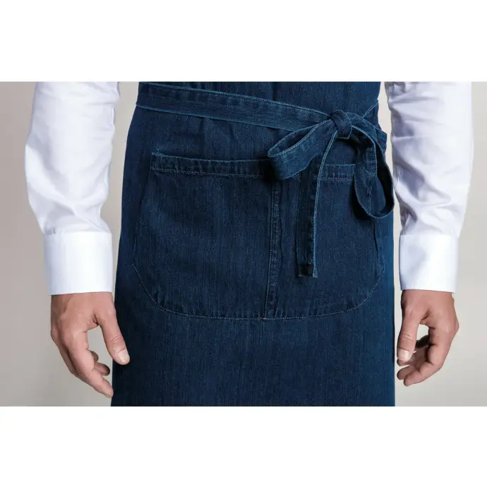 100% coton. Taille réglable par passant métallique. Grande poche avant en deux